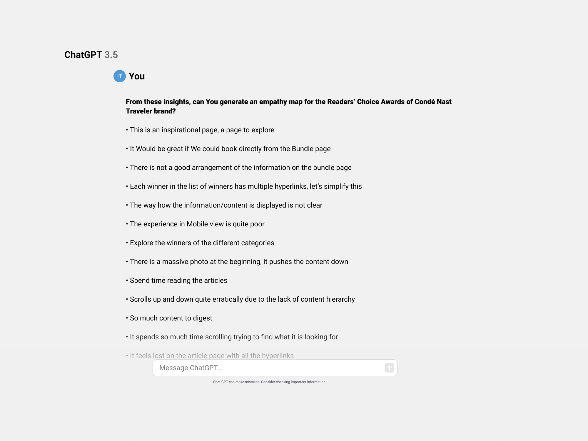 • Empathy map using AI: We had relevant user insights from user interviews from the 2021 bundle page, an example of how We could speed up this process is leveraging ChatGPT to create an empathy map, and prompt…