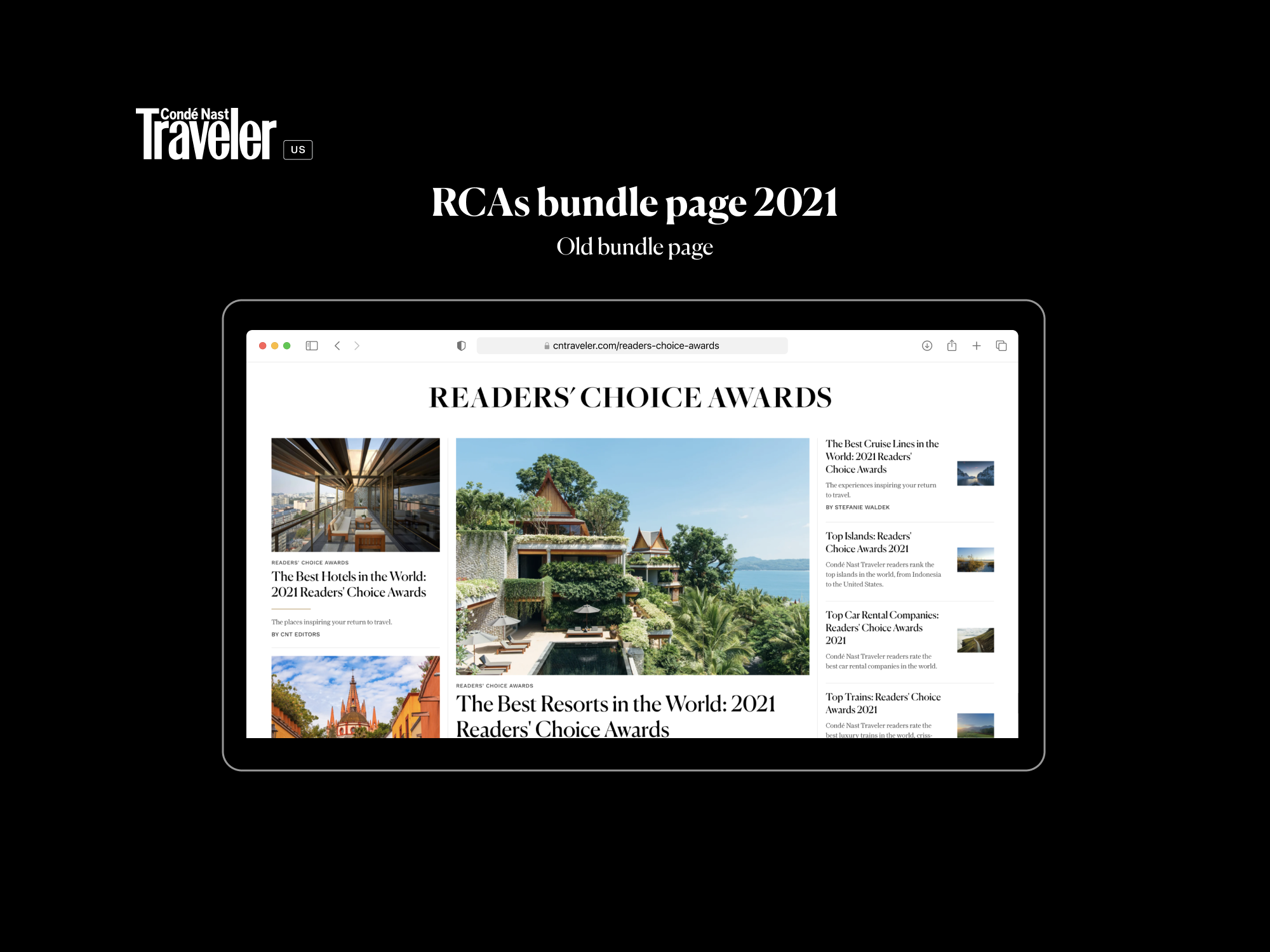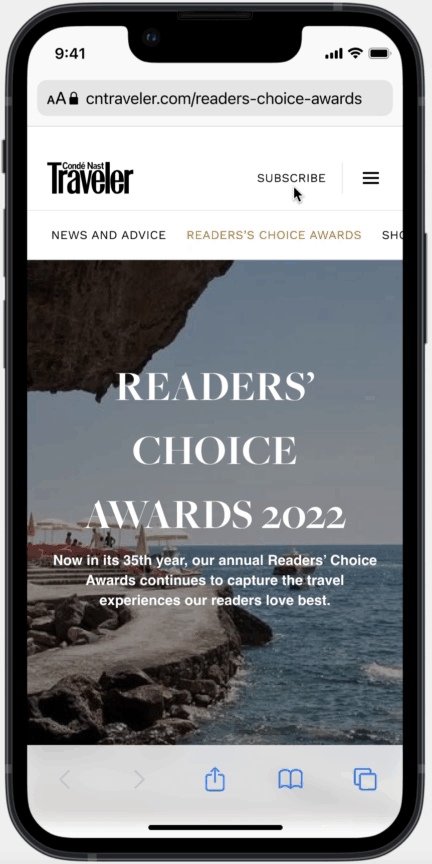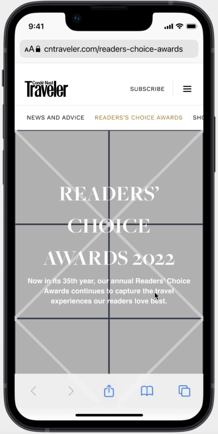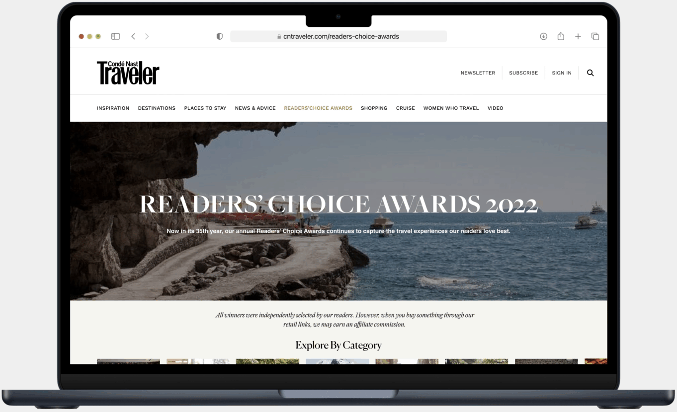 User: Global audience and Condé Nast Traveler user exploring Readers’ choice Awards.