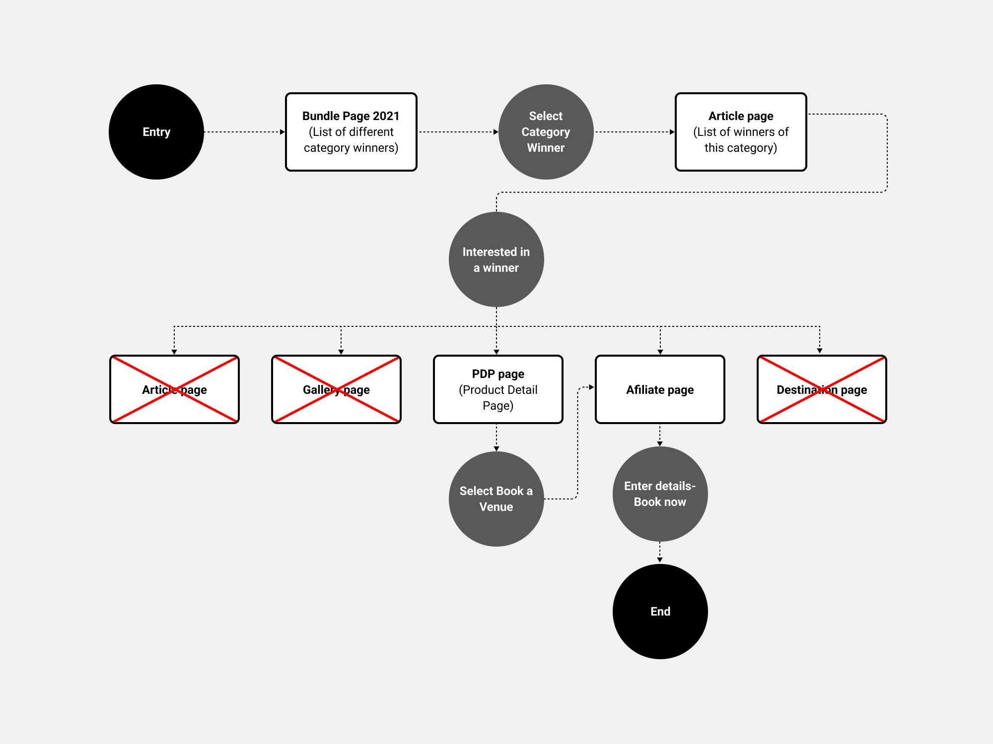 • User flow analysis: The user journey is inconsistent, with navigation to various pages causing drop-offs. To keep users in the funnel, I collaborated with the editorial team to optimise the flow and prevent redirections to irrelevant pages.