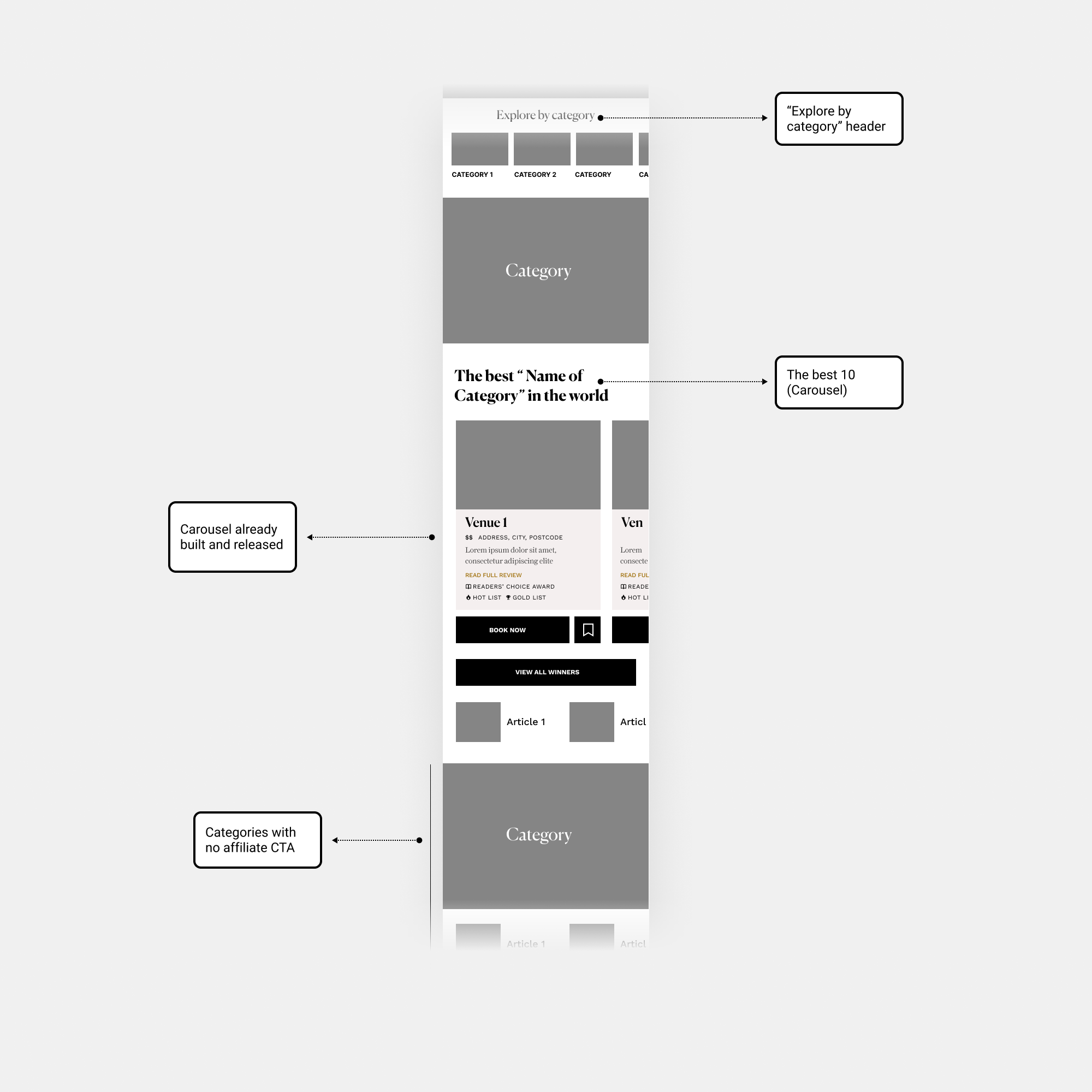 • We need to see how they look the categories with no affiliate CTA.
