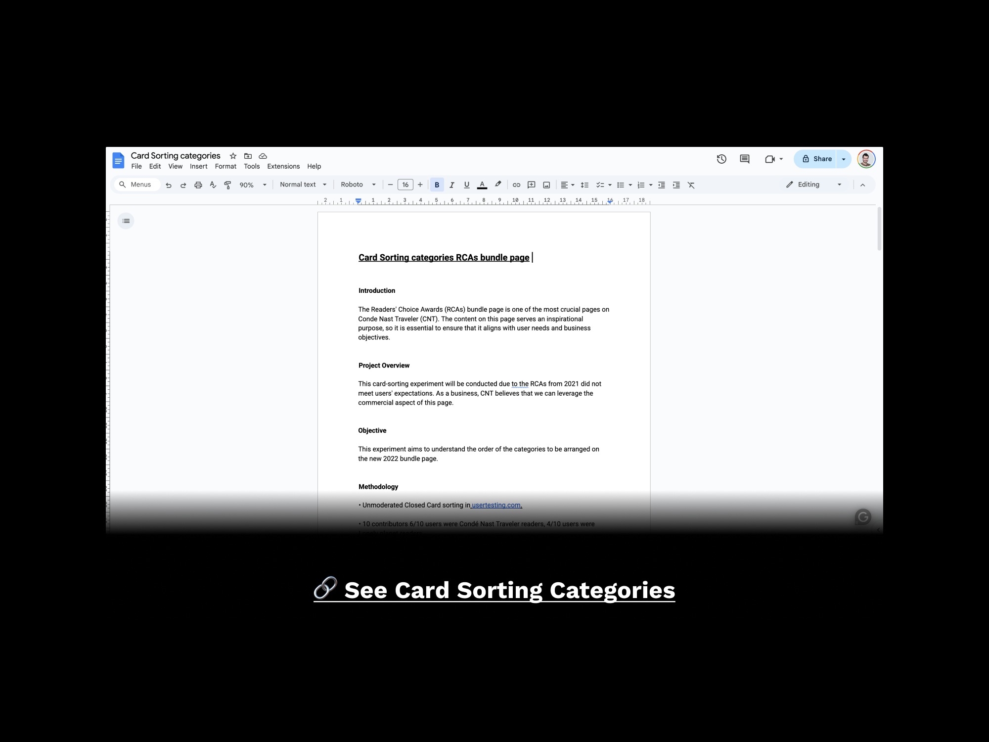• Card Sorting Hierarchy of the Categories: I conducted a card sorting test on usertesting.com to determine which categories were more significant to the users and to strike a balance with the commercial goals for this page.