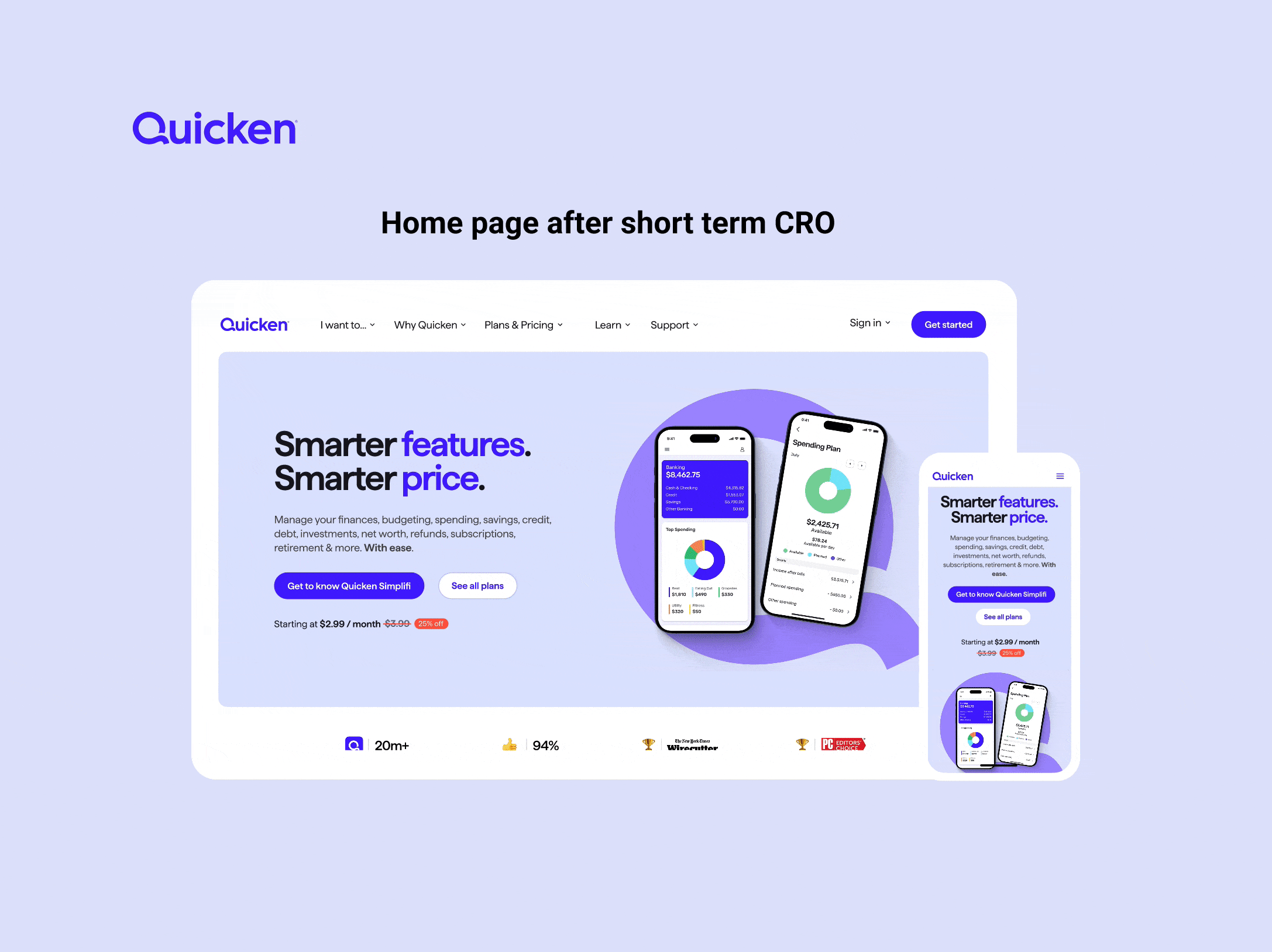 Quicken, a renowned FinTech platform in personal financial management (PFM), planned to expand by launching new products and a revised subscription model. Simultaneously, they focused on enhancing quicken.com’s scalability to support these offerings and developed a comprehensive strategy to optimise conversion rates (CVR) across the site for a seamless user experience.