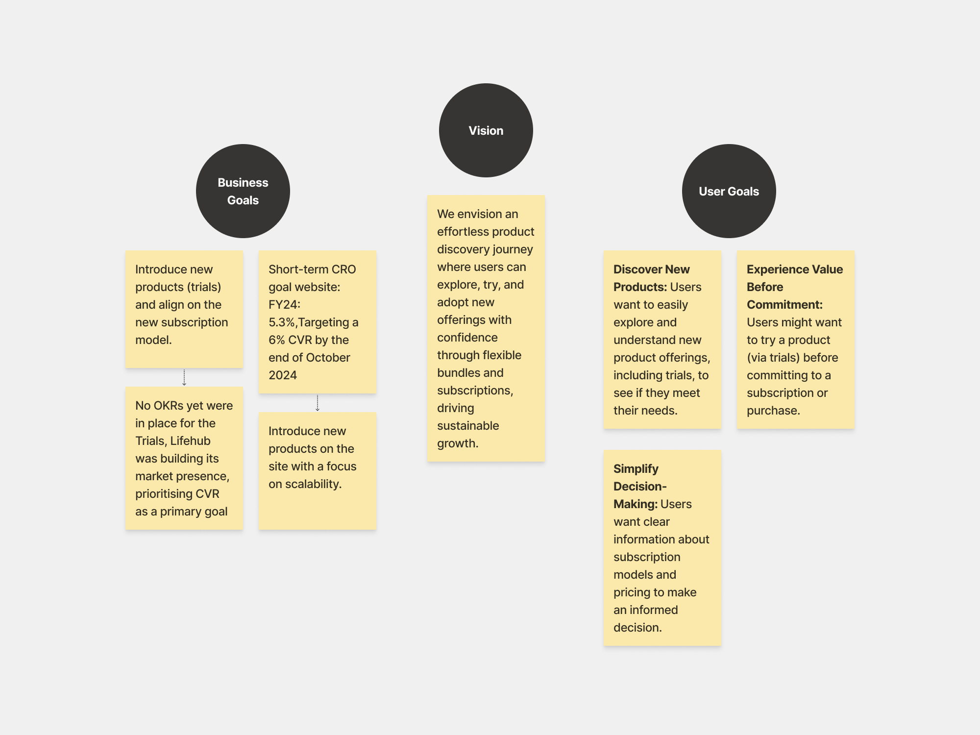 We aimed to introduce new products for existing subscribers while developing a scalable site and a new subscription model that incorporate bundles. This involved mapping use cases, designing user journey maps for the initial product phases, and ensuring a seamless user experience. Additionally, it required optimising website scalability to support the new products, applying conversion rate optimisation (CRO) tactics to drive engagement and achieve targeted CVR improvements for the upcoming financial year.