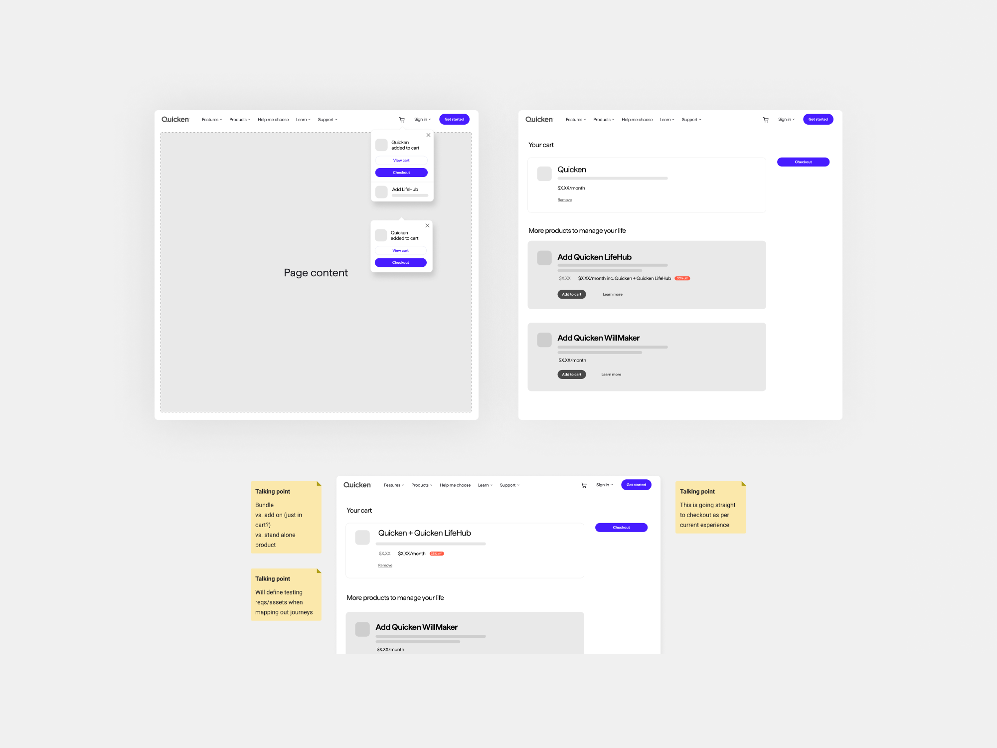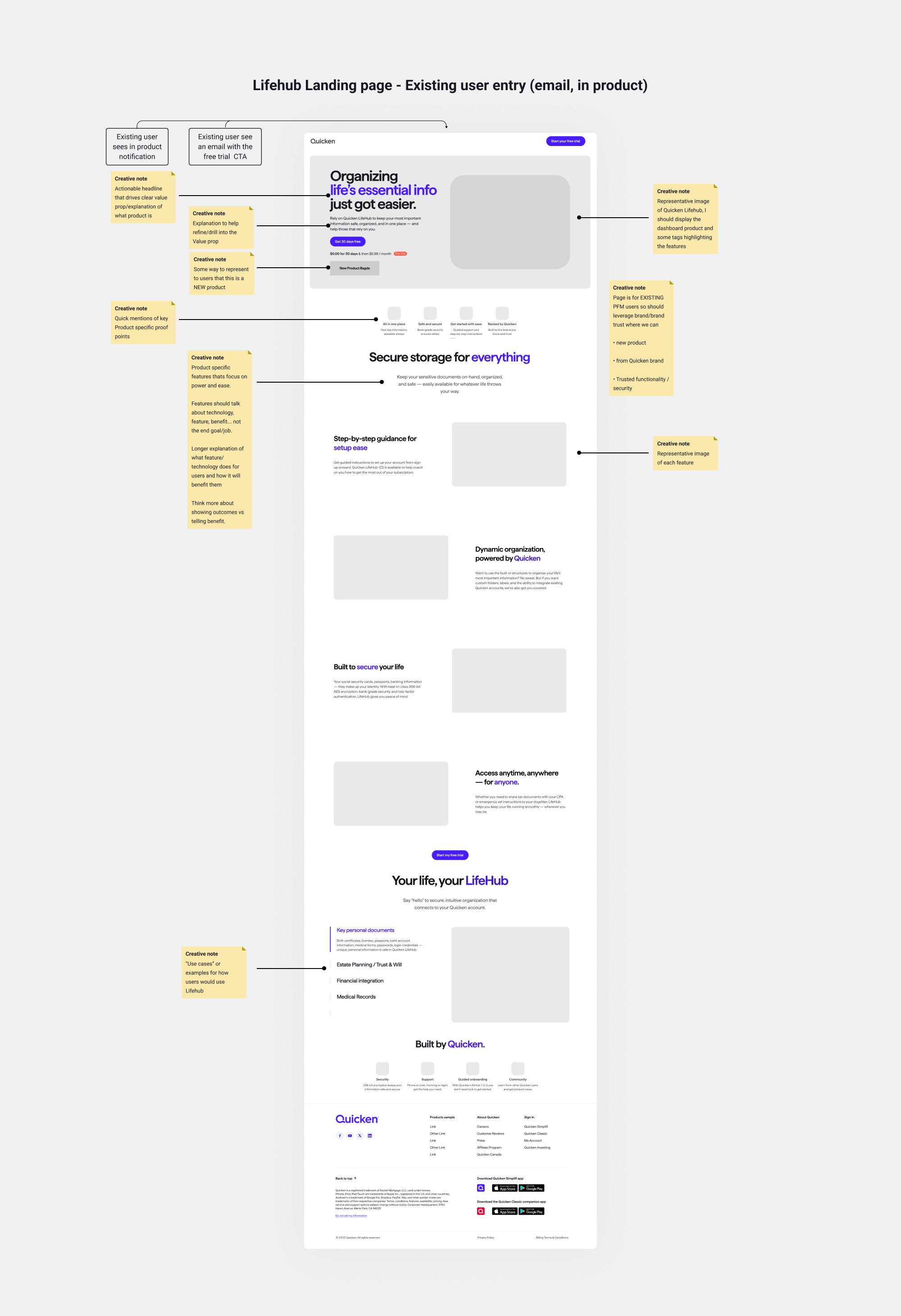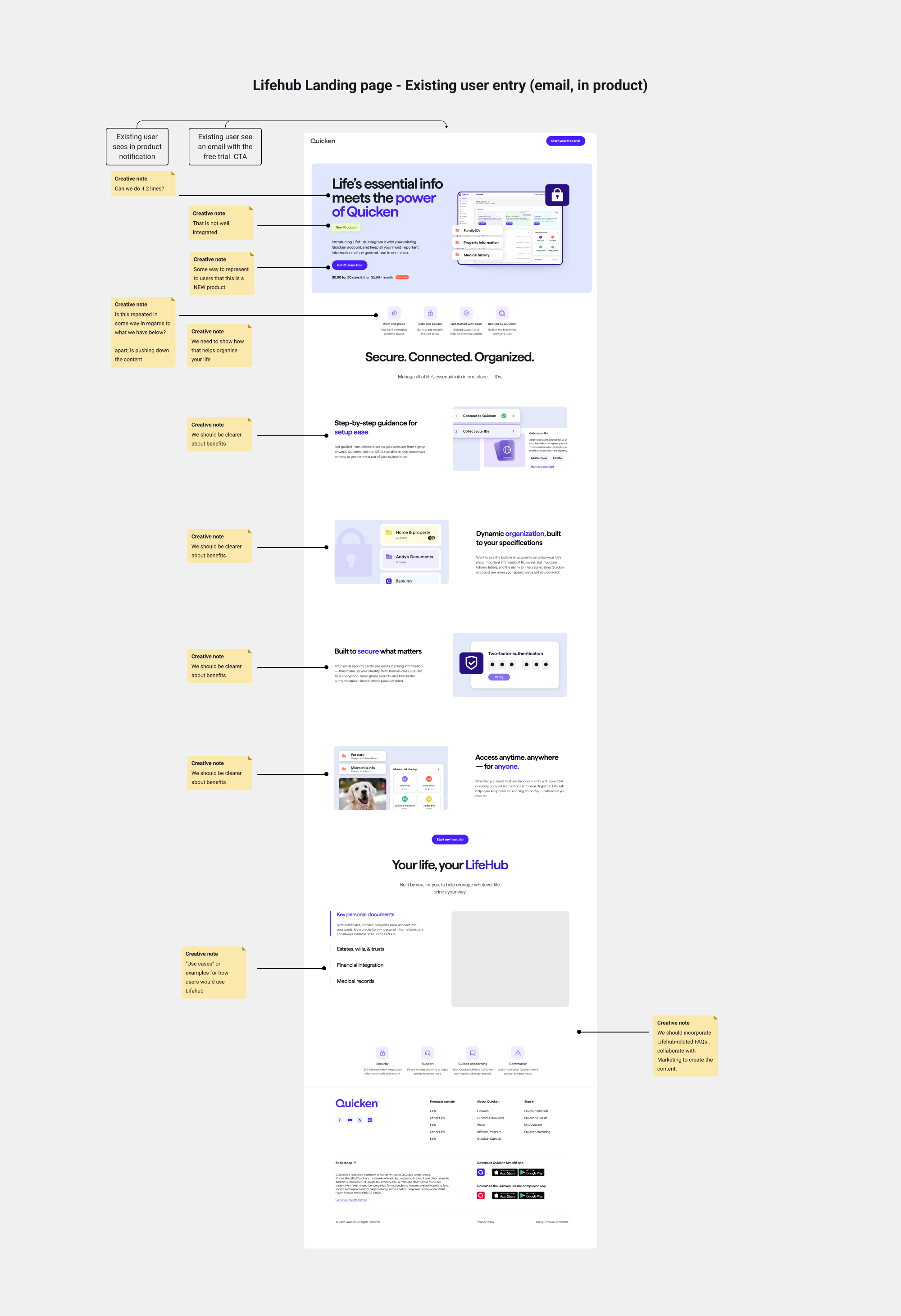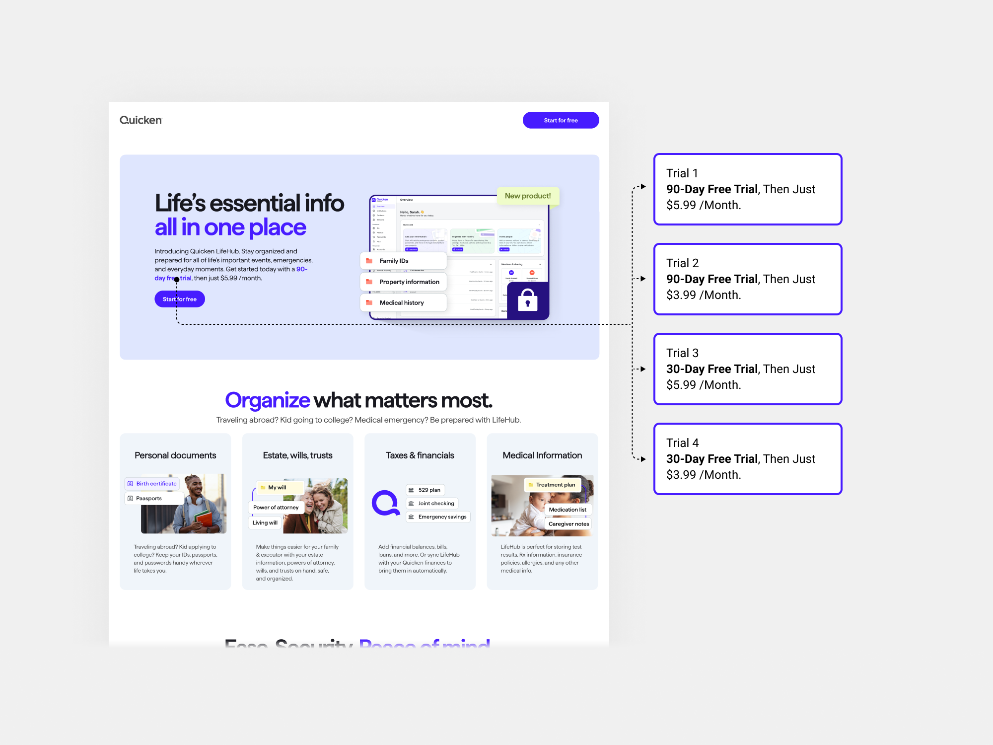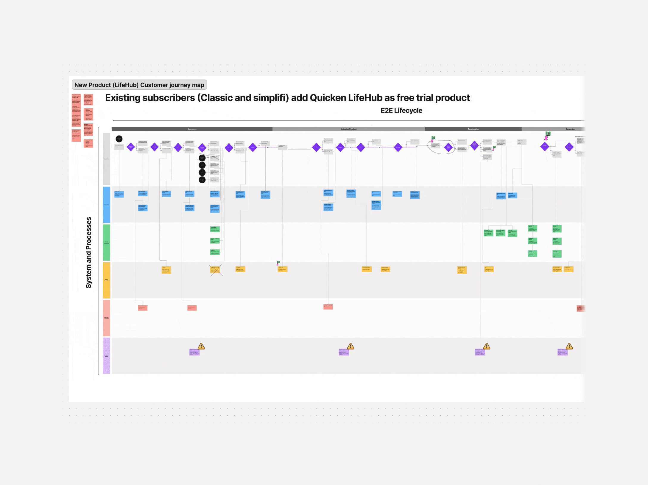 I mapped the Quicken LifeHub trial journey, identifying key impacts and business opportunities. Collaborating with the PM and marketing team, I outlined product phases, factoring in use cases, user journeys, and their impact on UX, Q.com/Checkout, My Account, and e-commerce.