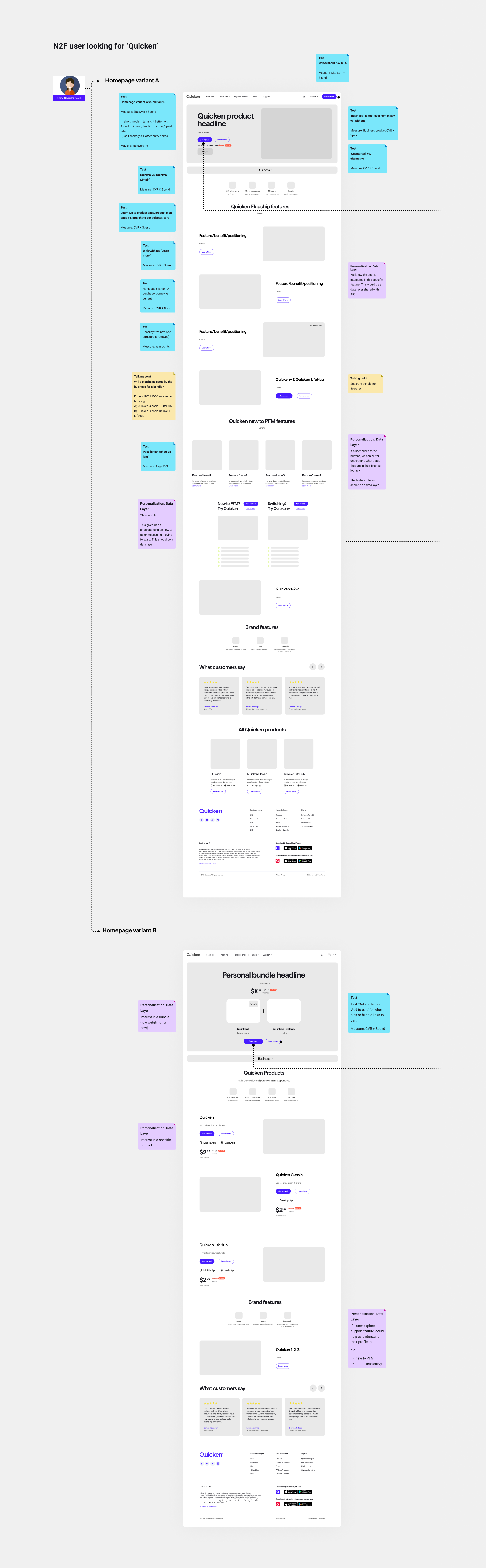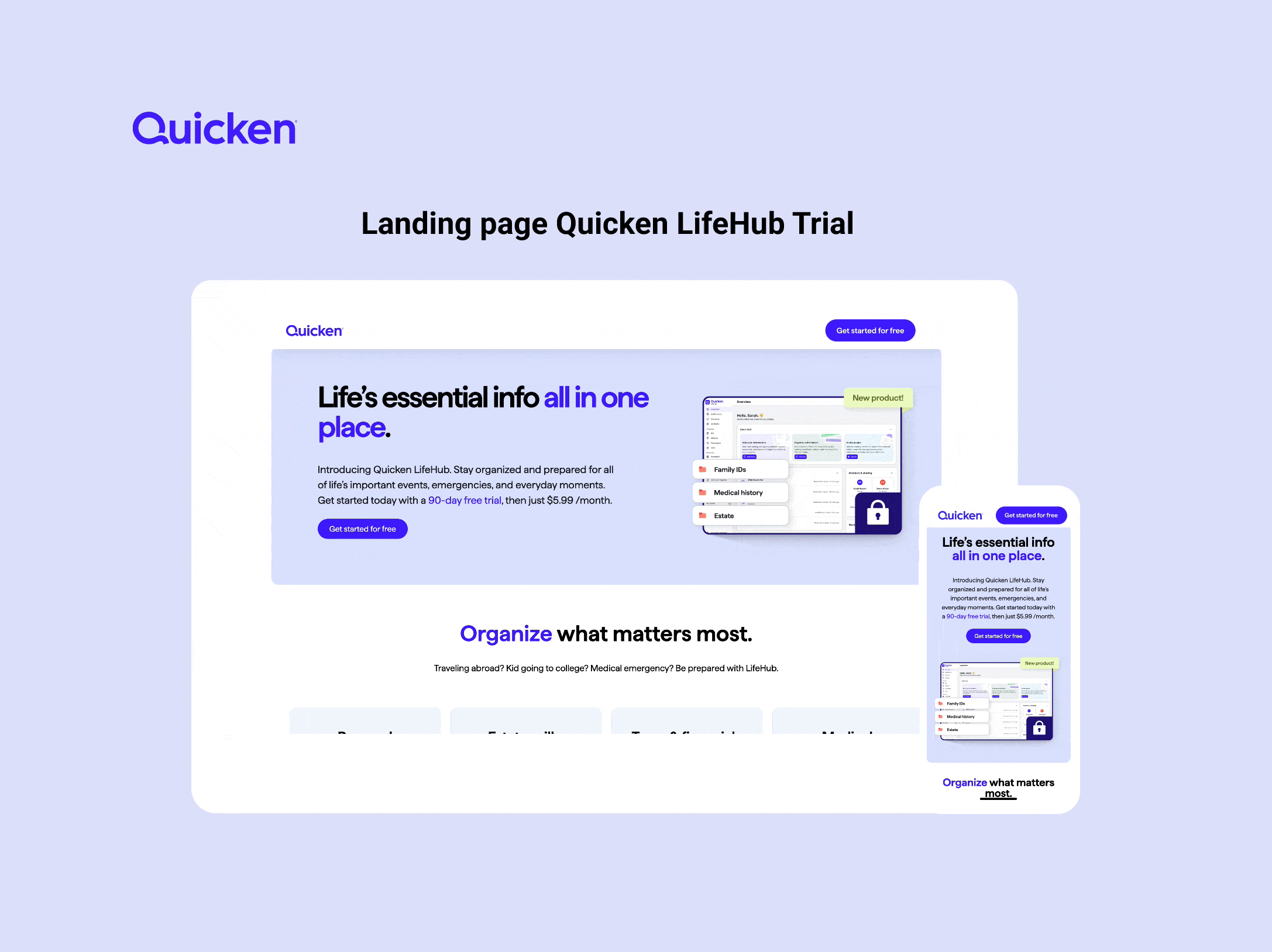 I led the user experience design for new products at Quicken, focusing on driving trial conversions for Lifehub (retention) and shaping the new subscription model, including cross-selling and upselling bundles (growth). Additionally, I contributed to short-term conversion rate optimisation (CRO) efforts and collaborated on mapping out the long-term CMS site structure and user experience, considering the new bundles offering.