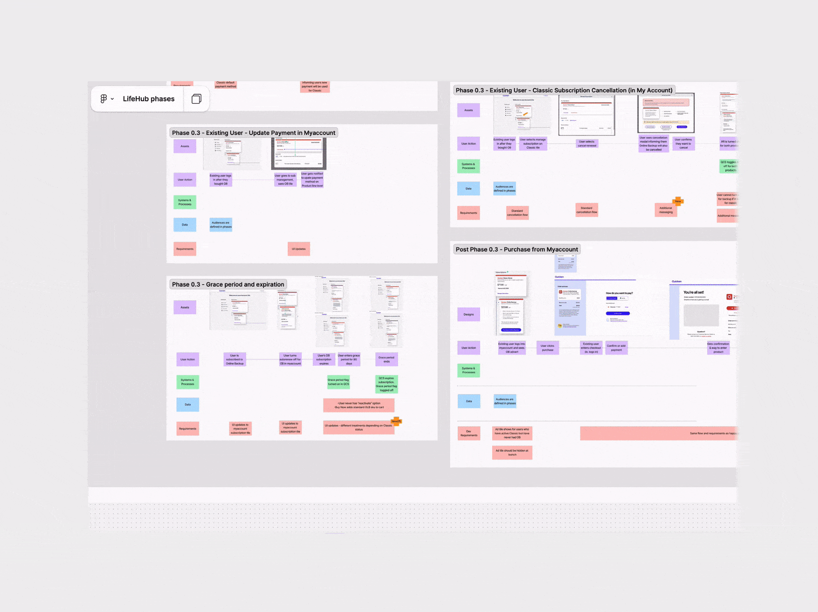 • It was challenging to map out the various phases (use cases and flows) of Lifehub in my account and confirmation screens because we lacked a complete understanding of the different scenarios (due to back-end restrictions) until the project was already well advanced. This highlights the critical importance of thorough planning from the beginning and have a contingency plan.