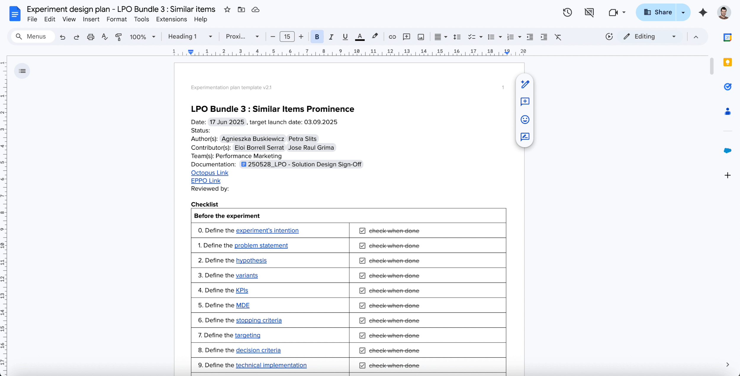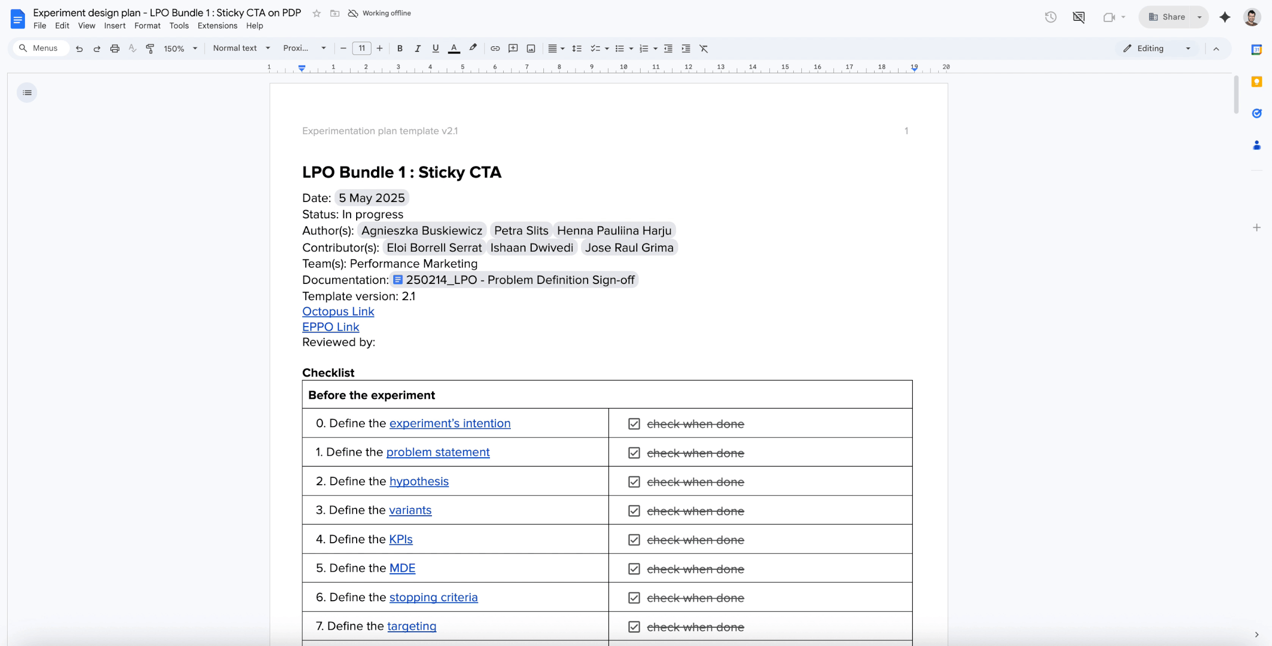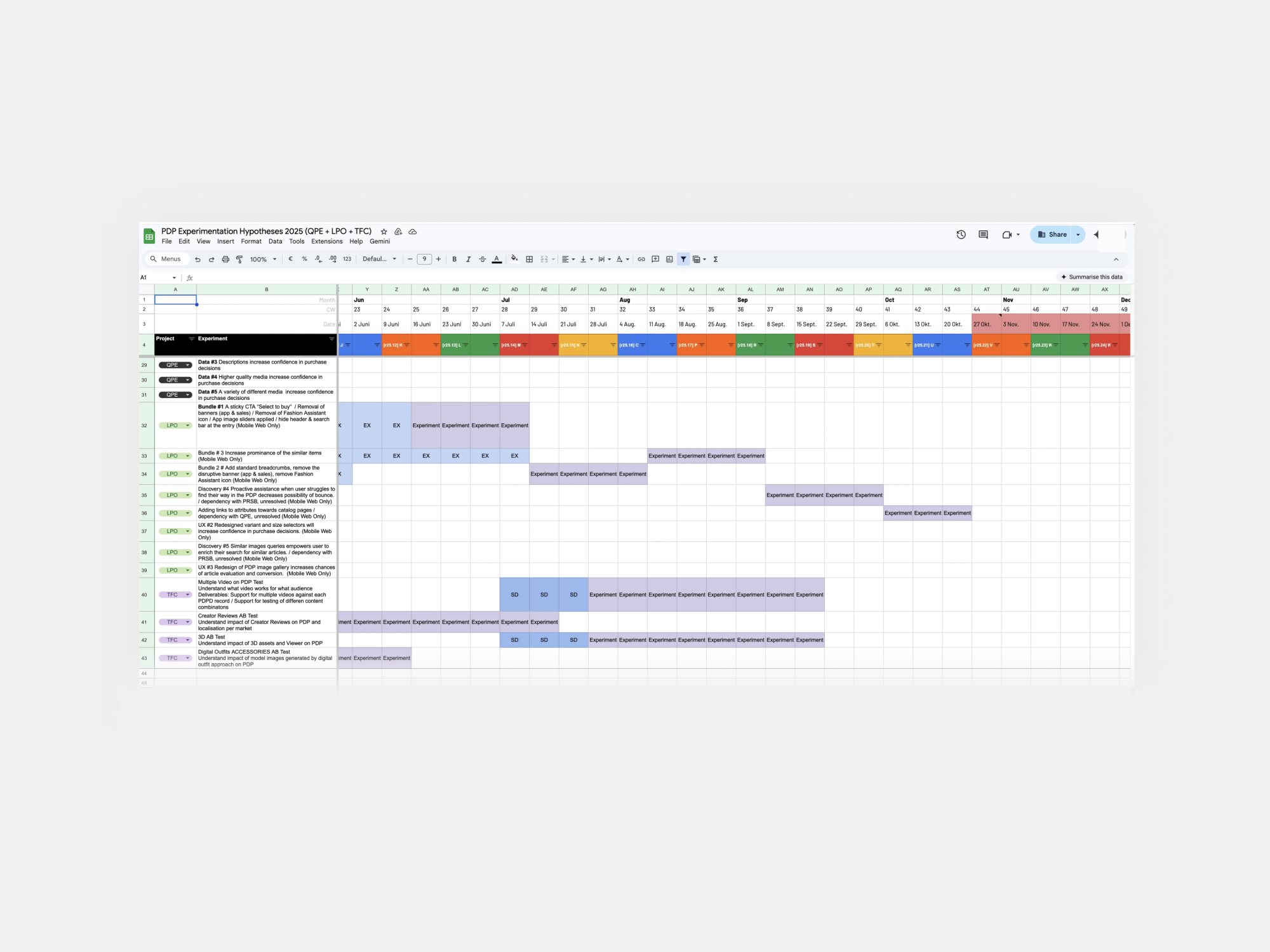 The LPO project ran experiments alongside other PDP initiatives, including QPE and TFC, each with different goals and audiences. To avoid overlap, manage dependencies, and maintain a holistic view of the PDP, we aligned closely across teams with a tracking artifact