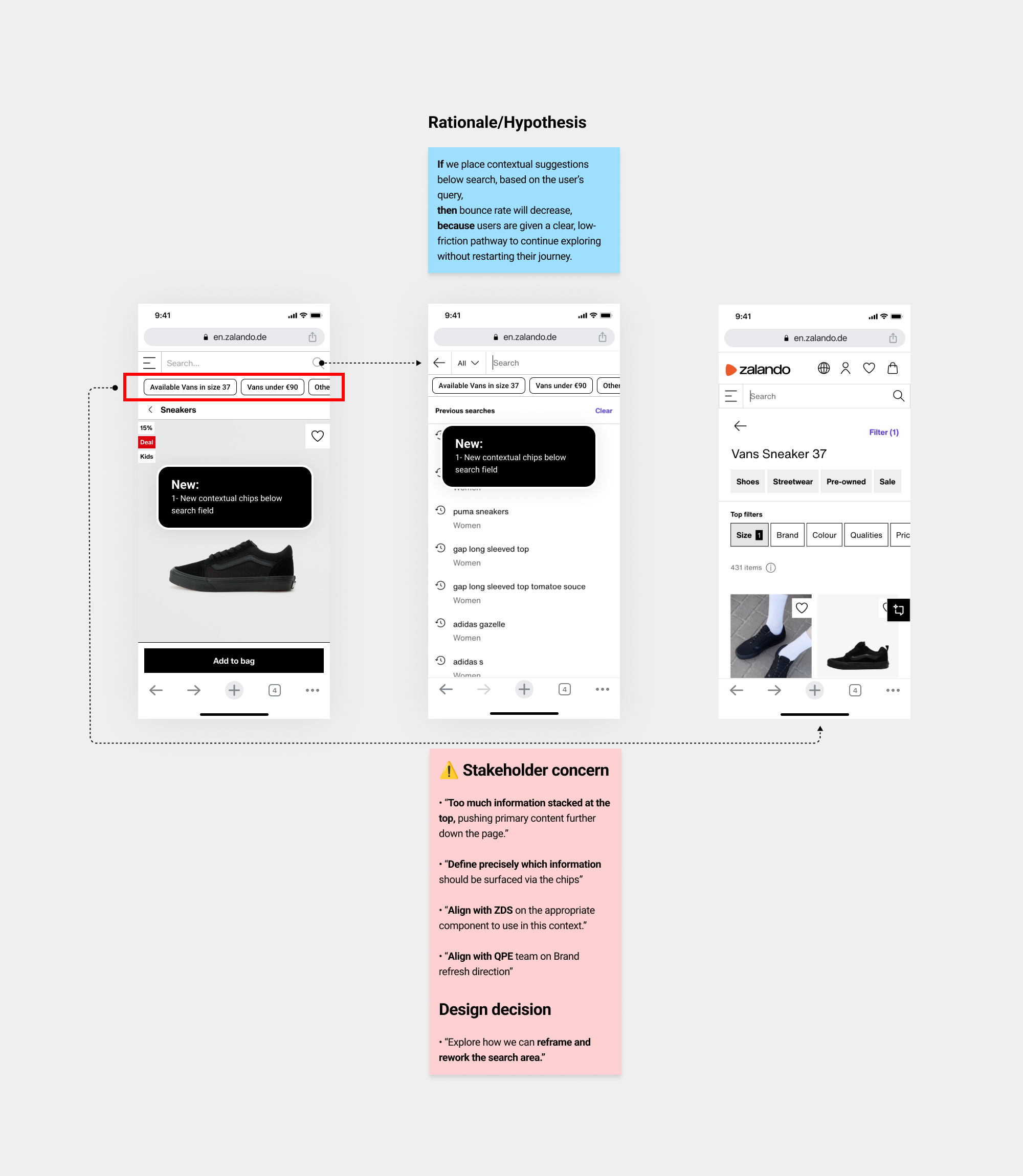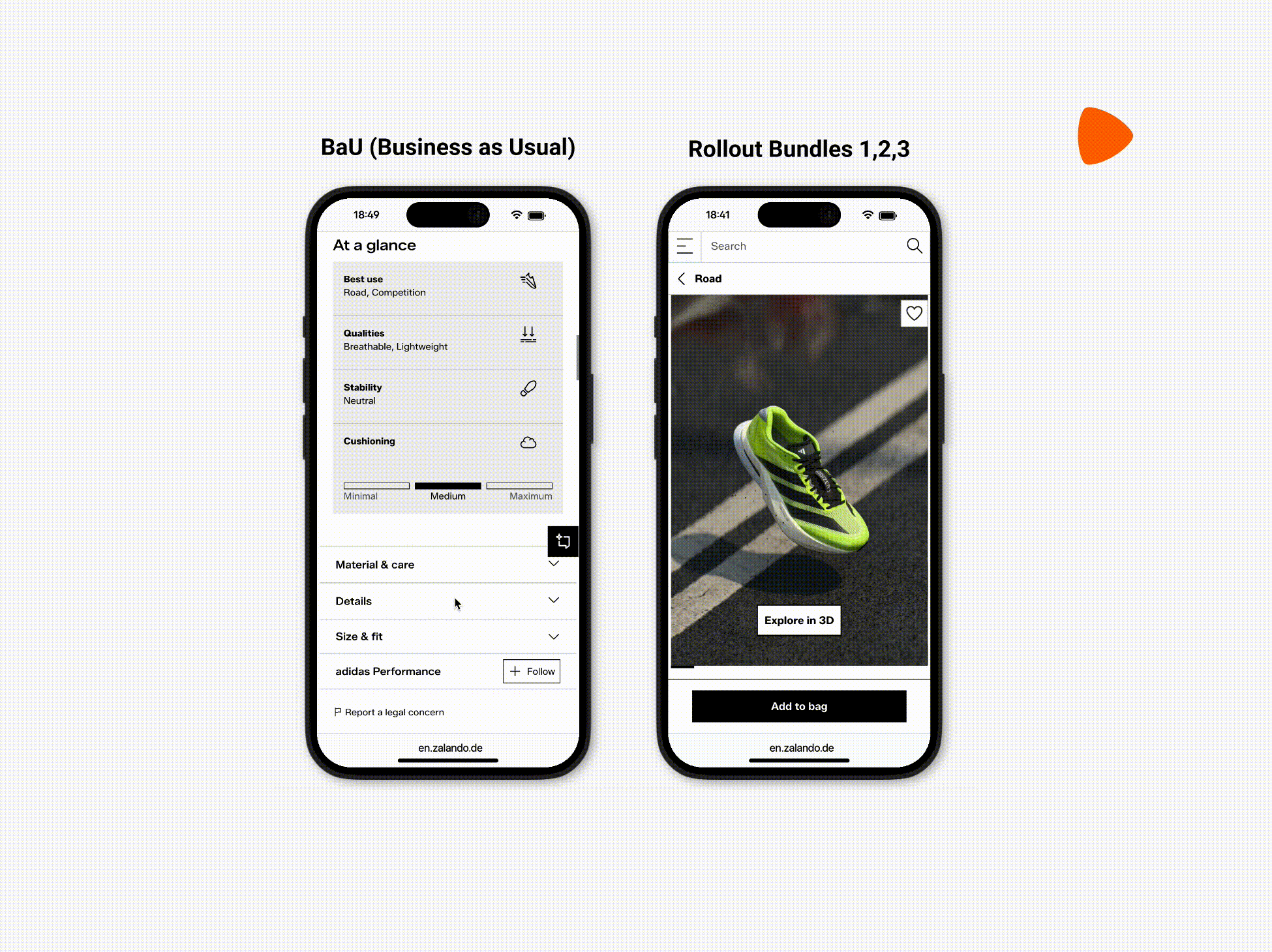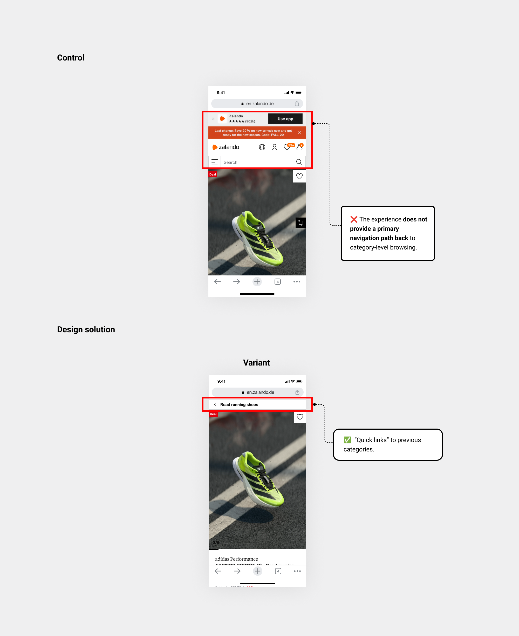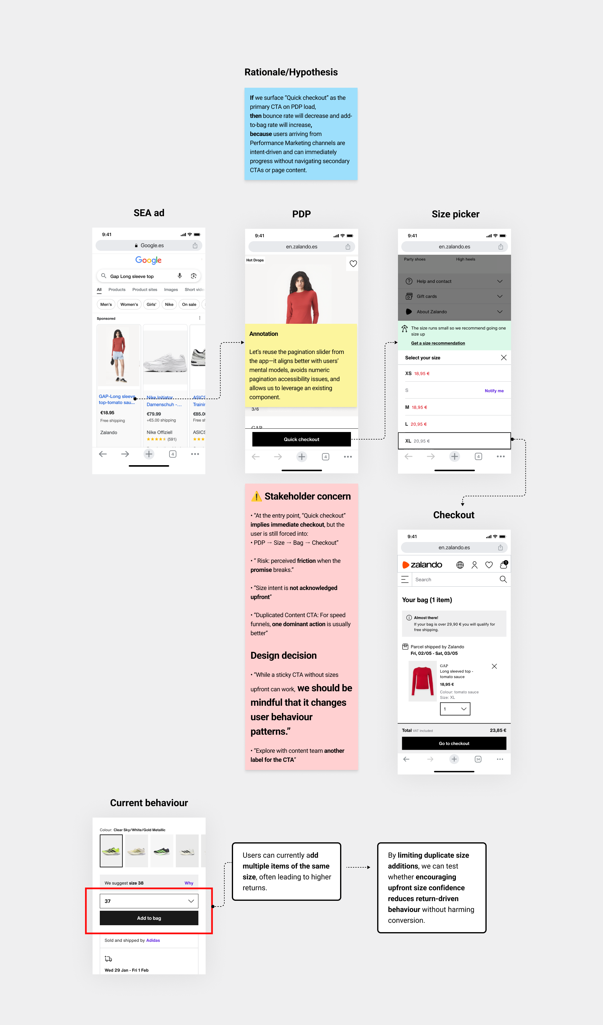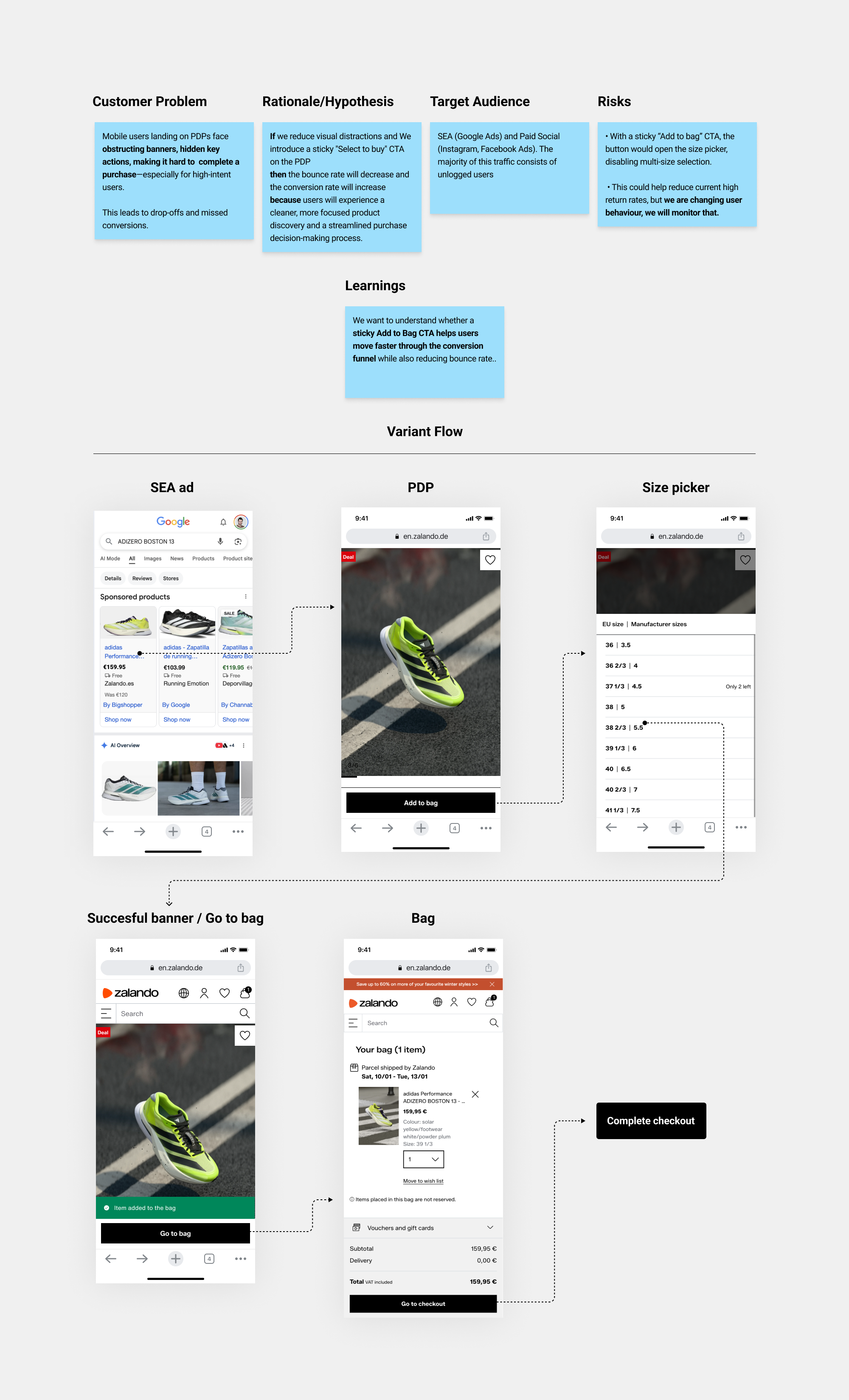 I optimised the PDP as a system, assessing scalable solutions for Performance Marketing and their potential to scale to the wider Zalando audience.