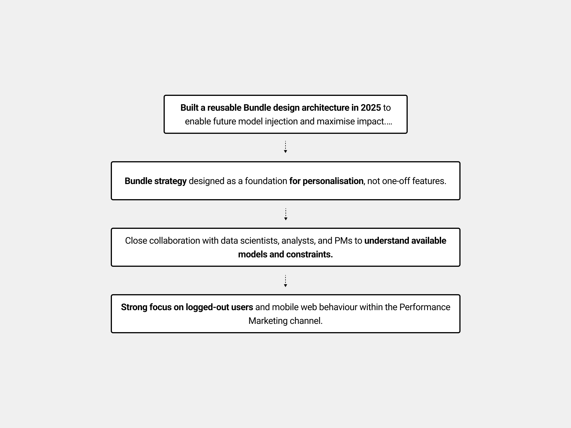 Around November 2025, we consolidated the 2026 roadmap by carrying over approved but unshipped Bundles (4–7), prioritised by BR and CVR impact and kept as a flexible backlog, while assessing their applicability to the native app.