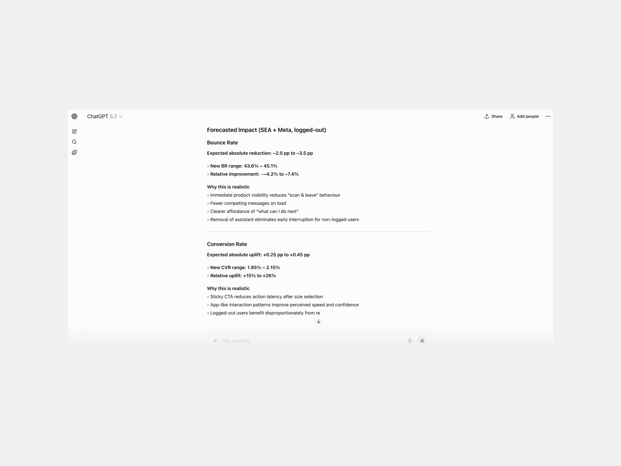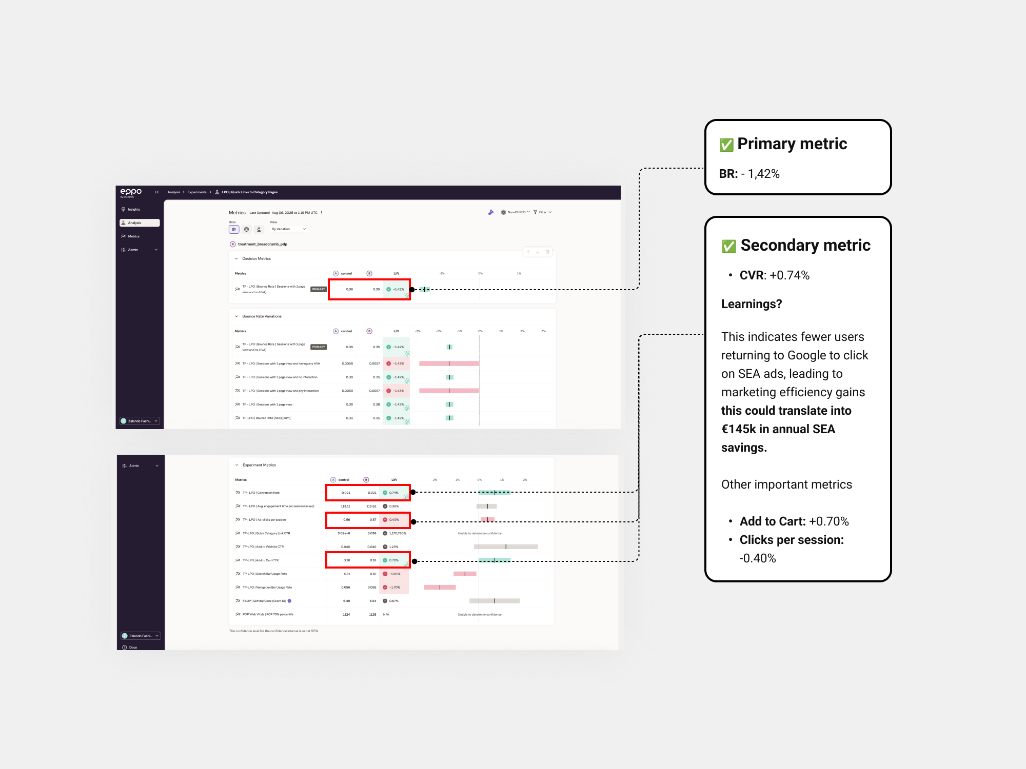 By experimenting and optimising the PDP entry experiences starting in April 2025, the LPO initiative delivered a measurable uplift across key business KPIs by January 2026. Starting from the baseline of 47.1% BR and 1.7% CvR.