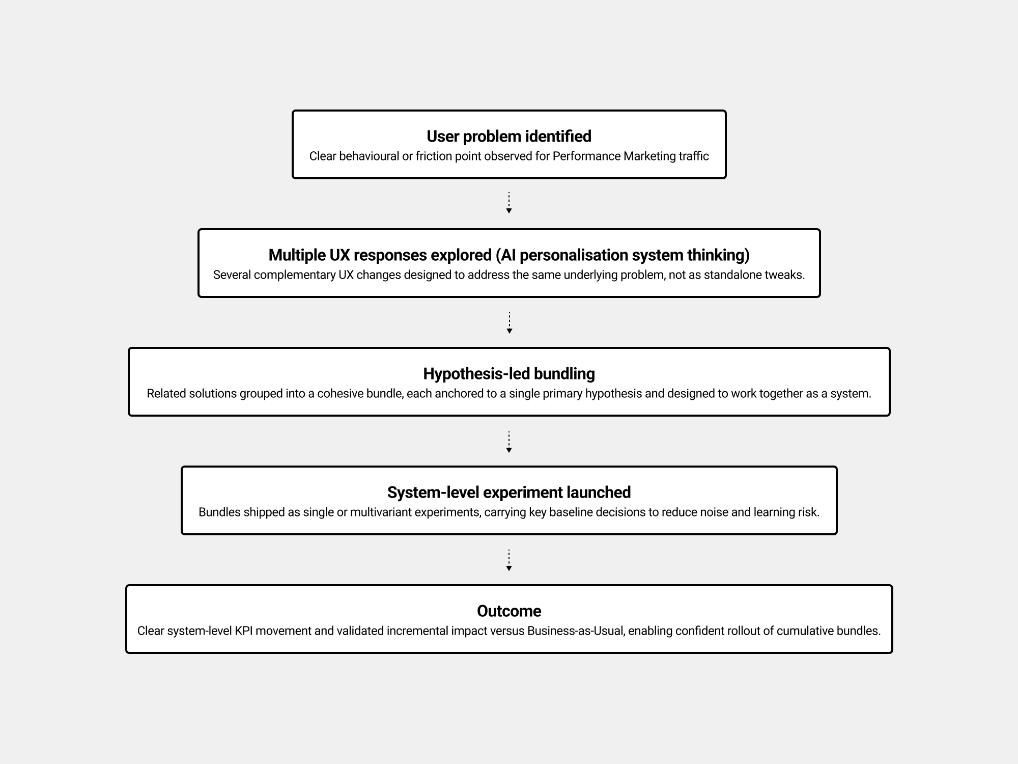 The how and when were still to be defined, meaning the next step was to lay out the execution plan and timeline for delivering the strategy. With financial pressure to deliver impact quickly, I accelerated Bundles 1–3 by prioritising bounce-rate reduction, recognising that lowering early drop-off was the necessary first step to unlock conversion and GMV uplift.