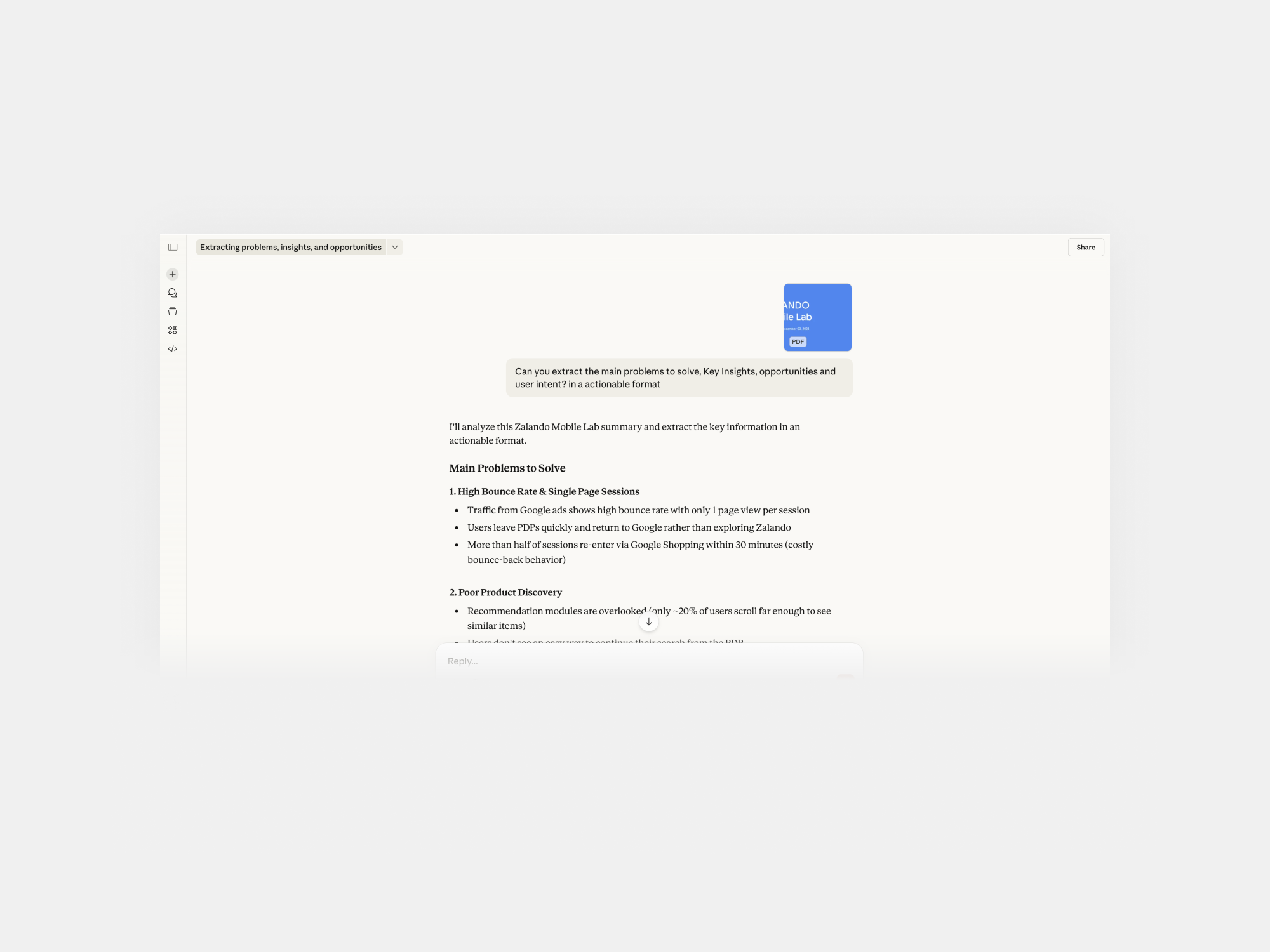 So I used ✦ Claude Opus 4.5 to extract all this information from a PDF report that Google created, Key insights, user behaviour, main problems to solve...just to have it more simplified and clear.
