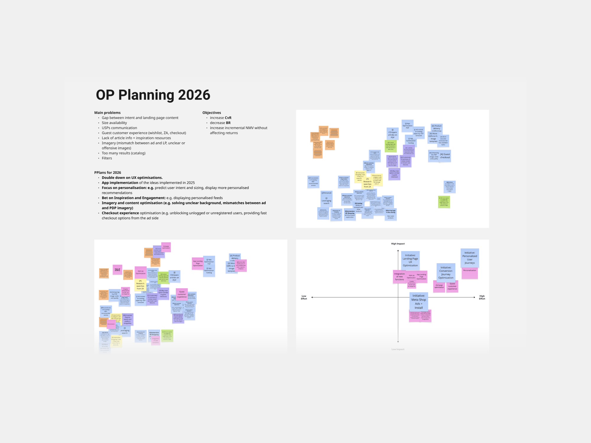 I co-led a workshop with a PM focused on hypothesis definition and initiative grouping for end-to-end customer journey OP planning, helping structure early thinking and opportunity areas using insights from Google and Meta workshops and 2025 data.